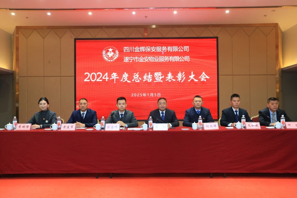 本网讯(通讯员 吴洪伟)1月5日,四川金辉保安公司2024年终总结暨表彰大会在遂宁市兴源大酒店温情开幕,全体管理层及员工代表280人欢聚一堂,共襄盛会,张灯结彩,其乐融融,致敬奋斗岁月,憧憬美好未来。